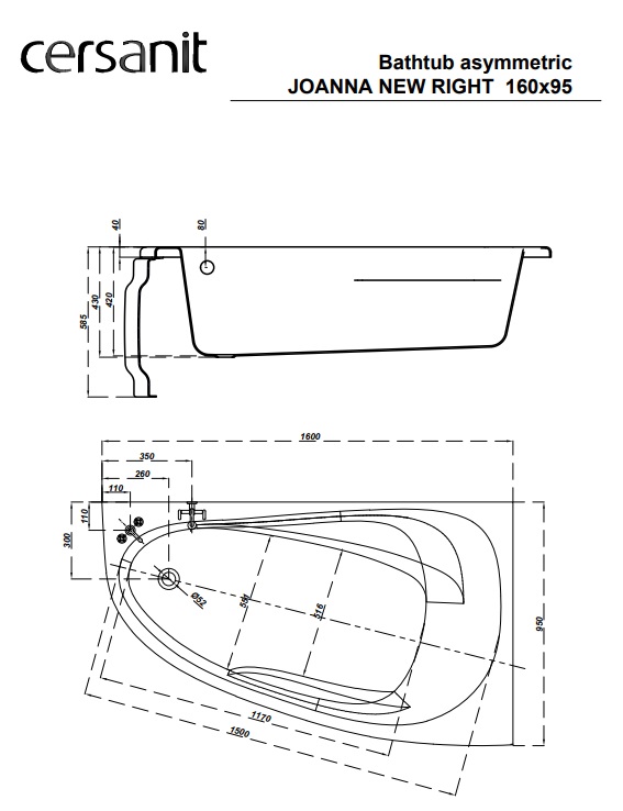Cikkszám: Cersanit Joanna aszimmetrikus akril kád 160x95 cm jobbos kivitelben KÉSZLETSÖPRÉS