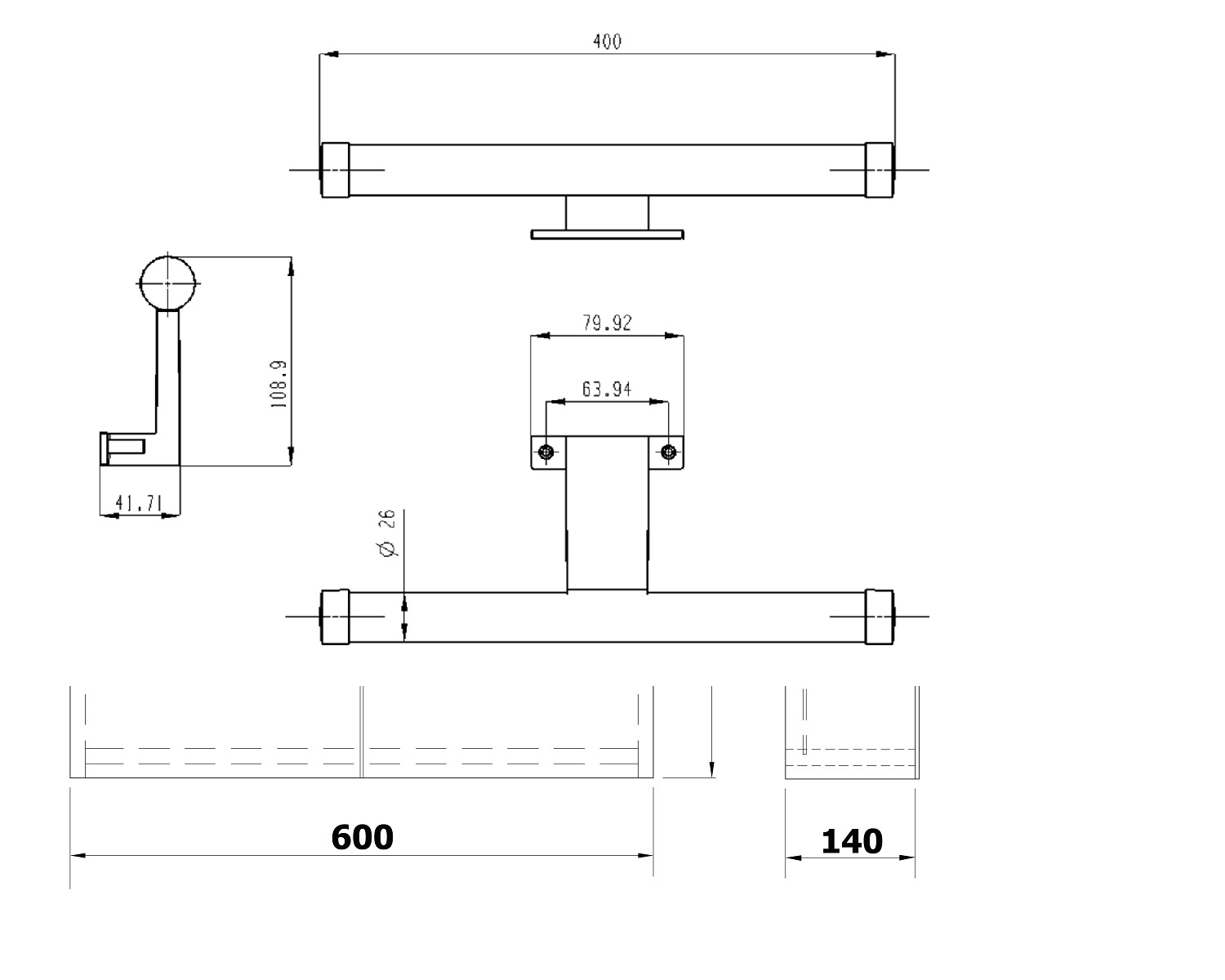 Aqualine Kronas LED világítás, 6W, 400x40x100 mm, króm