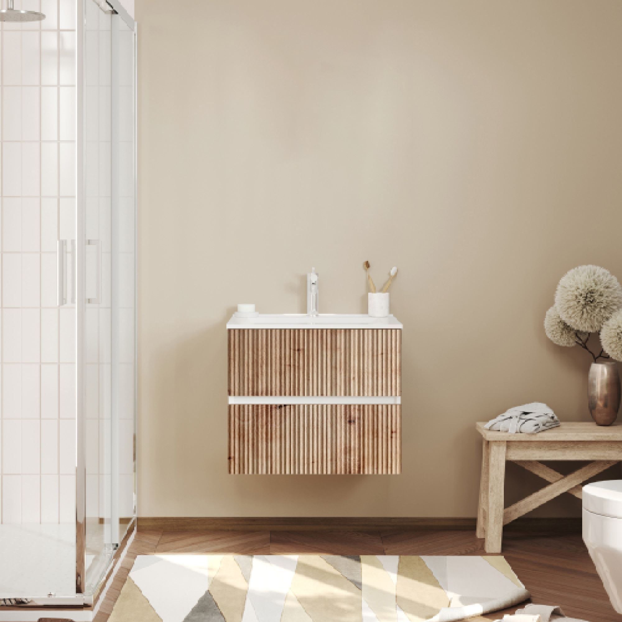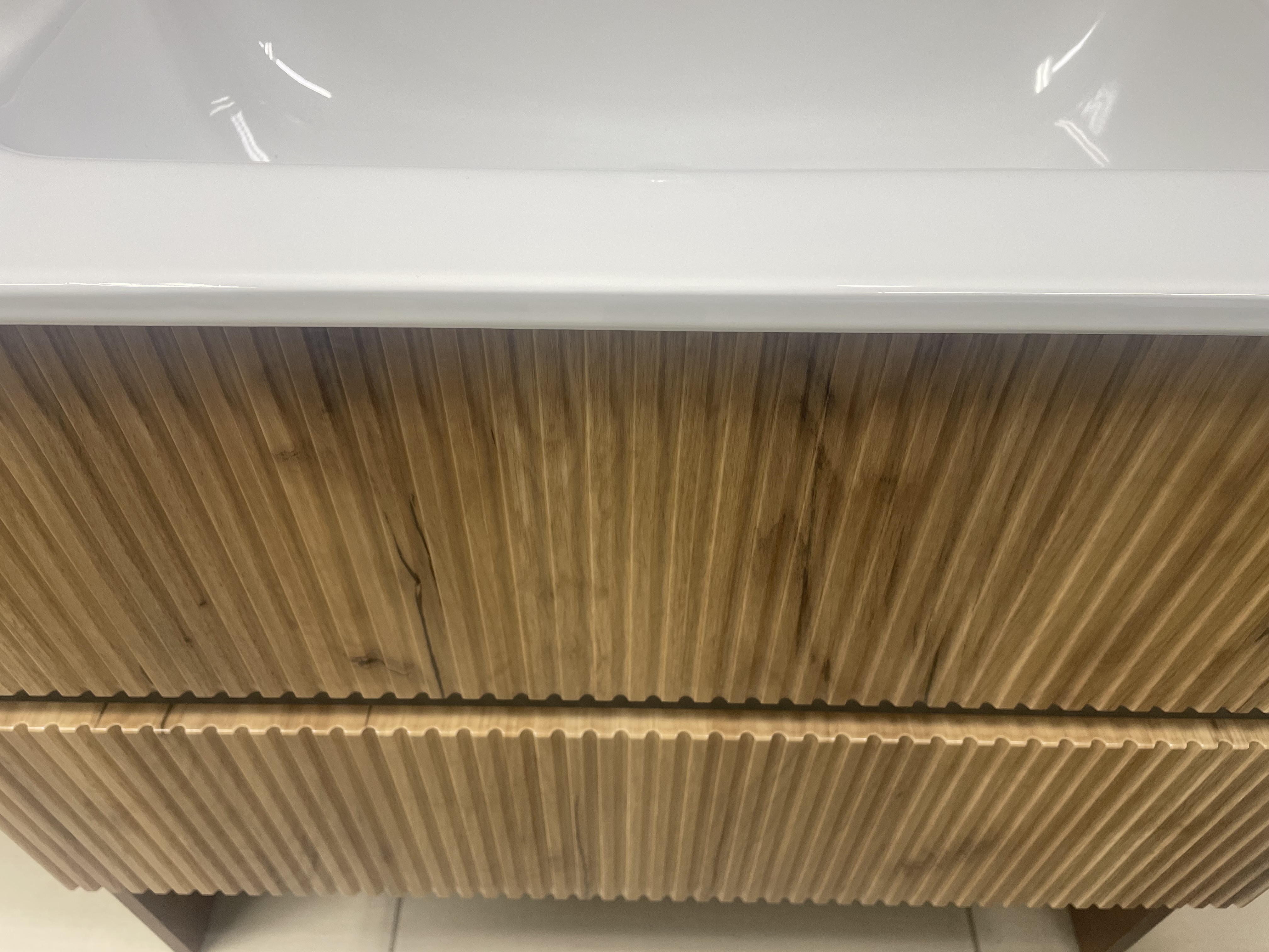 Bianco Lucido Santorini Woodfront 60 cm komplett fürdőszobabútor szett, mosdóval, tükörrel, világítással együtt