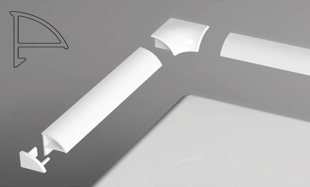 A takaróprofil a fal és a kád vagy a zuhanytálca közötti hézag eltakarására szolgál. Optimálisan takarja el a hézagot, lezárja azt, és a karbantartása sokkal egyszerűbb, mint a szabálytalanul felvitt fugázóanyag tisztítása, amely a szennyeződések lerakódása után rontja az egész munka megjelenését.