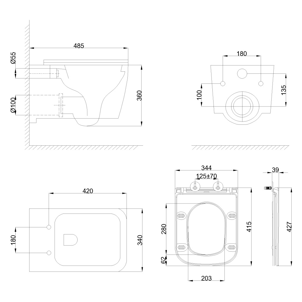 - Invena Malaga perem nélküli fali WC, Vortex - QFS öblítőrendszerrel