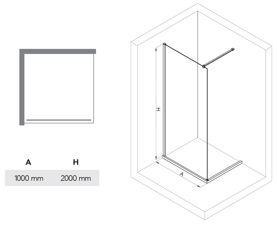 N-smart Frida Victory 100x200 cm Walk-in zuhanyfal, intim üveggel