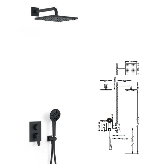 Tres Aspen falsík alatti komplett zuhanyrendszer, matt fekete